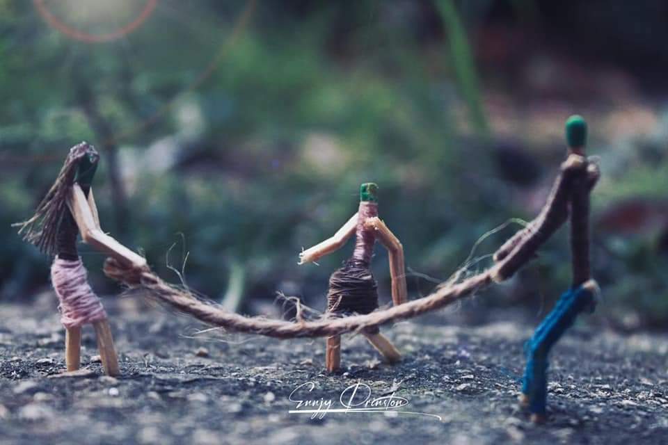 Lanmò, lanmou, lespwa, laperèz, estrès, move nouvèl… se seri mesaj sa yo Ennjy fè pase ak bwa alimèt. Li ba yo fòm moun, epi mete yo kanpe nan yon fason pou l fè yo ekspime sa li vle nan moman an. Atizay sila a, ak alimèt yo, marande ak pasyon jenn fanm sa genyen pou fotografi. Dayè, se bèl kalite kout flach li ki pèmèt nou fè konesans ak zèv li yo.